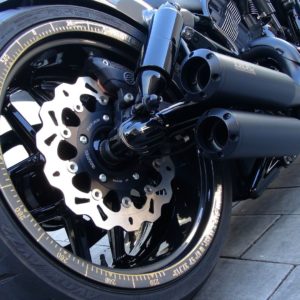 Die Achsencover hinten sind aus Metall und decken an der Schwinge hinten die Schraubenköpfe der Schwingenachse ab.Dadurch entsteht einen cleane Optik.Sie werden zusammen mit der unteren Stoßdämpferaufnahme verschraubt.