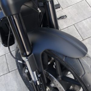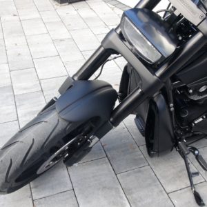 Der Frontfender ist deutlich kürzer und schmaler als der originale und hat zum Schutz der Tauchrohre links und rechts Schutzflaps.Er hat eine Riefe in der Mitte. Damit passt er optisch zu unserem Heckfender BBC 091.