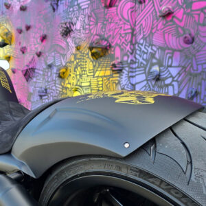 Der GFK Heckfender passt bist zu einer Reifenbreite von 300.Er sitzt perfekt und muss nicht noch aufwendig nachgearbeitet werden.Die Elektronik passt vollständig in den Heckfender und muss nicht neu verlegt werden.