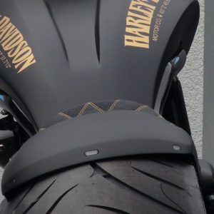 Diese Ausführung hat die Möglichkeit im unteren Rand des Heckfenders mini LED`s mit verschiedenen Funktionen unterzubringen. Wir verbauen links und rechts mini Blinker BBC 101 und in der Mitte das Brems/-Rücklicht BBC 100 ,oder die “cleane”3 in 1 Variante von Kellermann.Rücklicht/Bremslicht/Blinker BBC 186.Die Löcher müssen vom Kunden selber integriert werden.Der original Stahl Unterfender von deinem Bike kann nicht weiter verwendet werden, wir empfehlen den Unterfender Metall BBC 067 mitzubestellen.Dadurch ist eine 2 Sitzer Zulassung kein Problem.Die passende Beleuchtung von Kellermann Rücklicht/Bremslicht/Blinker BBC 186 findest du hier.