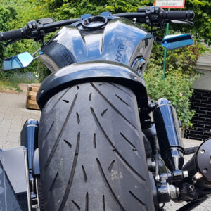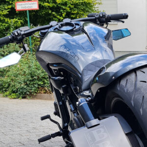 Die schwarzen, etwas dickeren Lenkergriffe sind perfekt verarbeitet.Dadurch hast du mehr Grip und es fühlt sich massiver an.